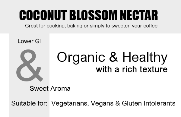 Directions for use: Our organic coconut nectar is the perfect alternative to honey or traditional sugar and great for drizzling, cooking and baking with.